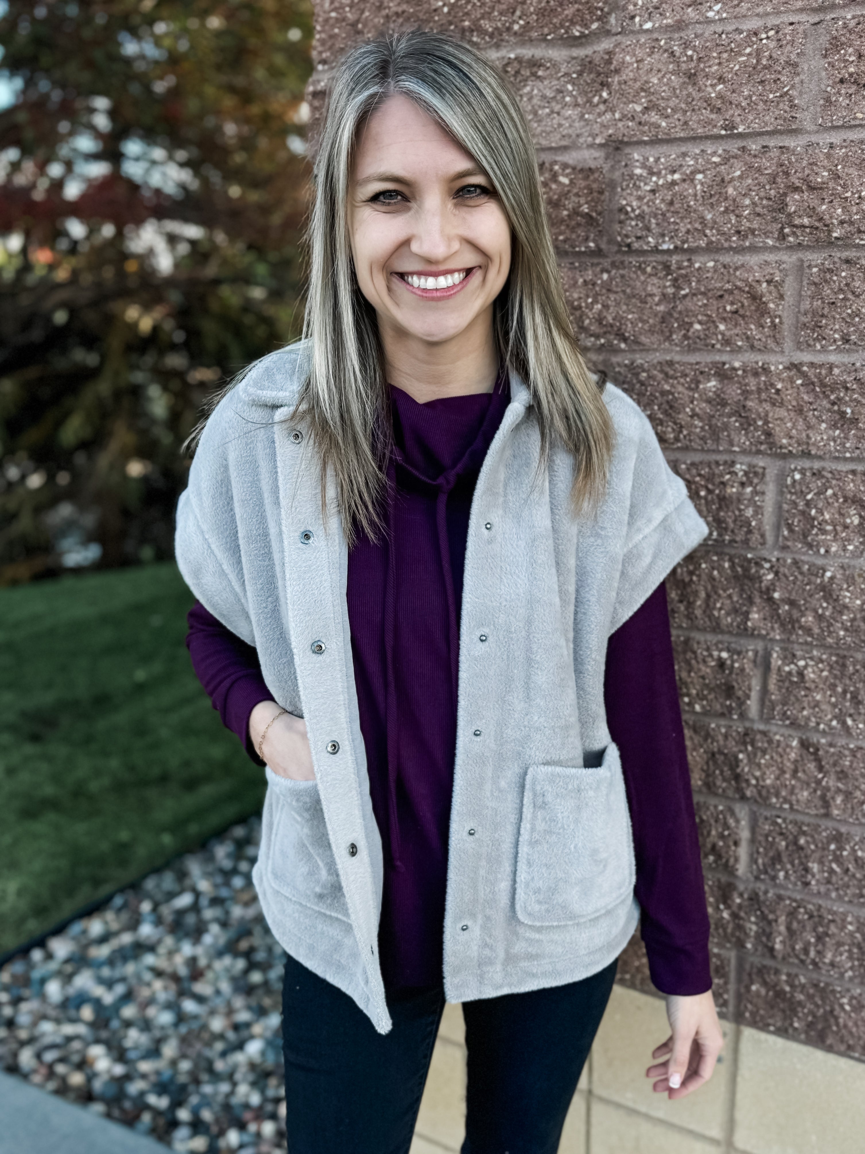 Extended Drop Shoulder Sleeve Button Front Patch Pocket Knit Vest