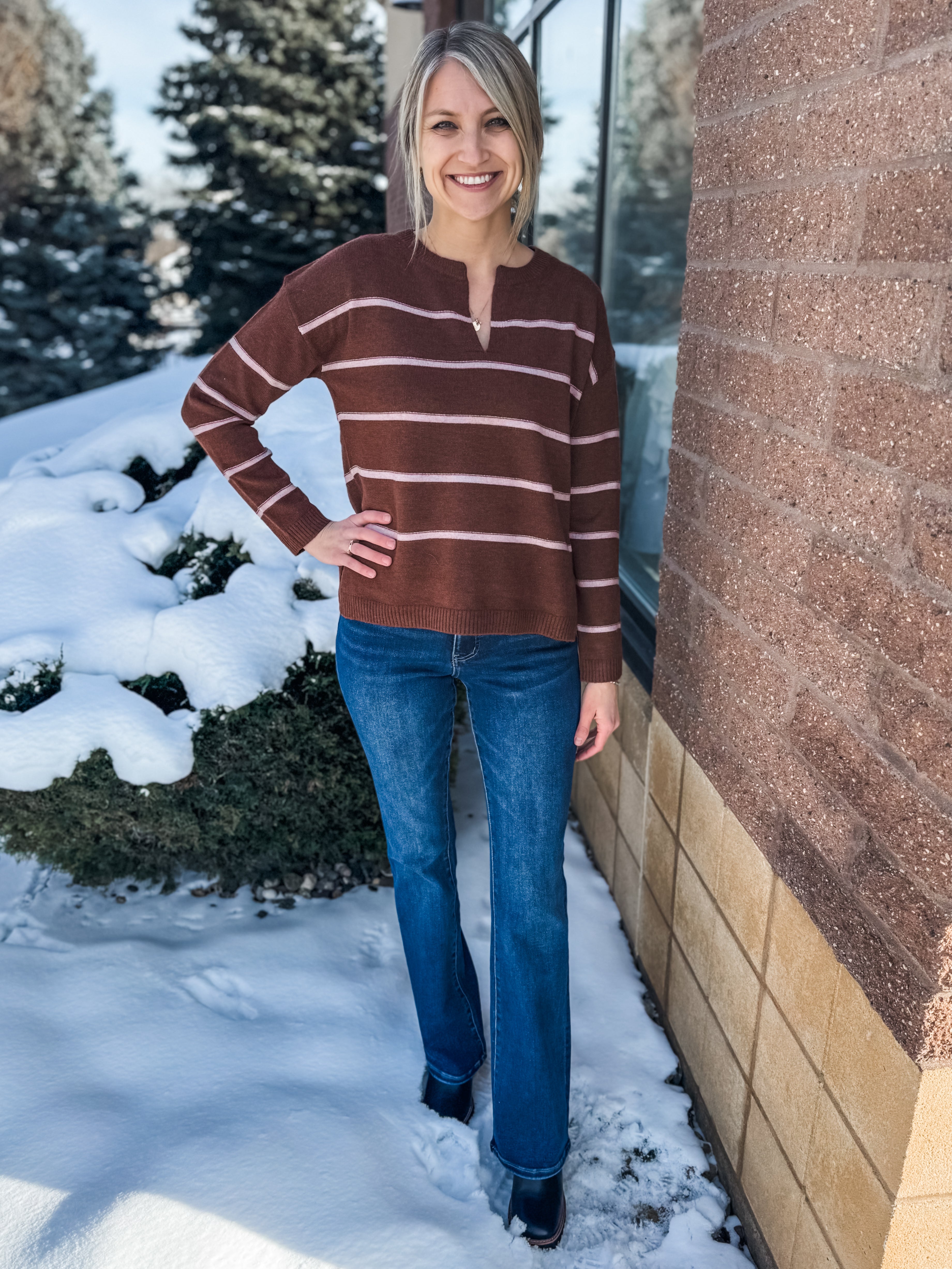 Stripe V-Neck Sweater Knit Top